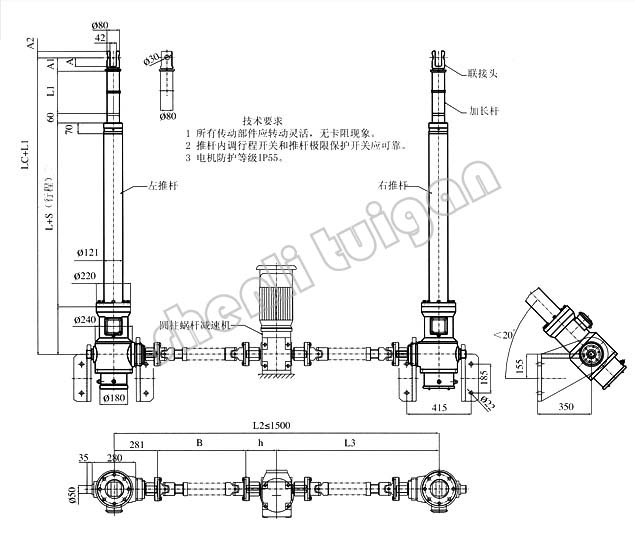 TDTS型同步雙推桿外形及安裝尺寸圖